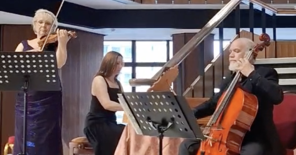 A portare questo esperimento visionario nello Scalone Monumentale, spazio imponente finora mai pensato per la musica, è stato un trio d’eccezione: Marina Martianova (violino artistico), docente allo SFOM di Aosta; Polina Znamenskaya (clavicembalo antico), dal Conservatorio degli Urali; e Luca Taccardi (viola da gamba), già Orchestra RAI. Tre mondi, tre strumenti, una sola anima.