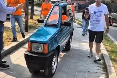 L’auto, frutto di un lavoro artigianale estremo, nasce dalla riduzione di una Panda di prima generazione a poco più di mezzo metro di larghezza. Rimossi gli interni centrali, restano solo le fiancate, un volante minuscolo e i finestrini laterali permanentemente aperti per permettere al guidatore di tenere fuori spalle e braccia. Un veicolo elettrico e funzionante, certo non omologato per la strada, ma che ha conquistato il web per la sua estetica bidimensionale e per la sua capacità di trasformare un’icona popolare in oggetto di culto contemporaneo.