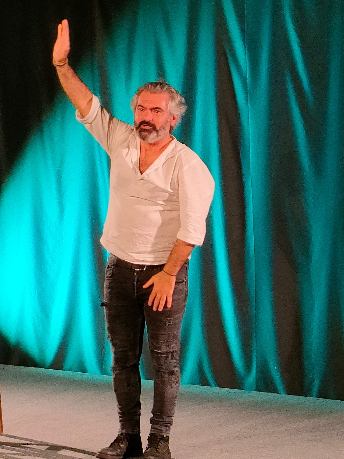 La scena è nuda: niente musica, niente scenografie, nessun artificio. Solo Santomauro. E tanto basta, perché – come avrebbe detto Jerzy Grotowski – l’incontro teatrale avviene davvero. Il pubblico visualizza tutto: il piccolo Stefano alle prese con le prime “regole di benessere”, la madre che inventa l’inesistente favola educativa di Gregorio, il bambino che mangia sano, o persino Marina Abramović, icona dell’arte performativa, evocata mentre resta immobile per ore in un museo.