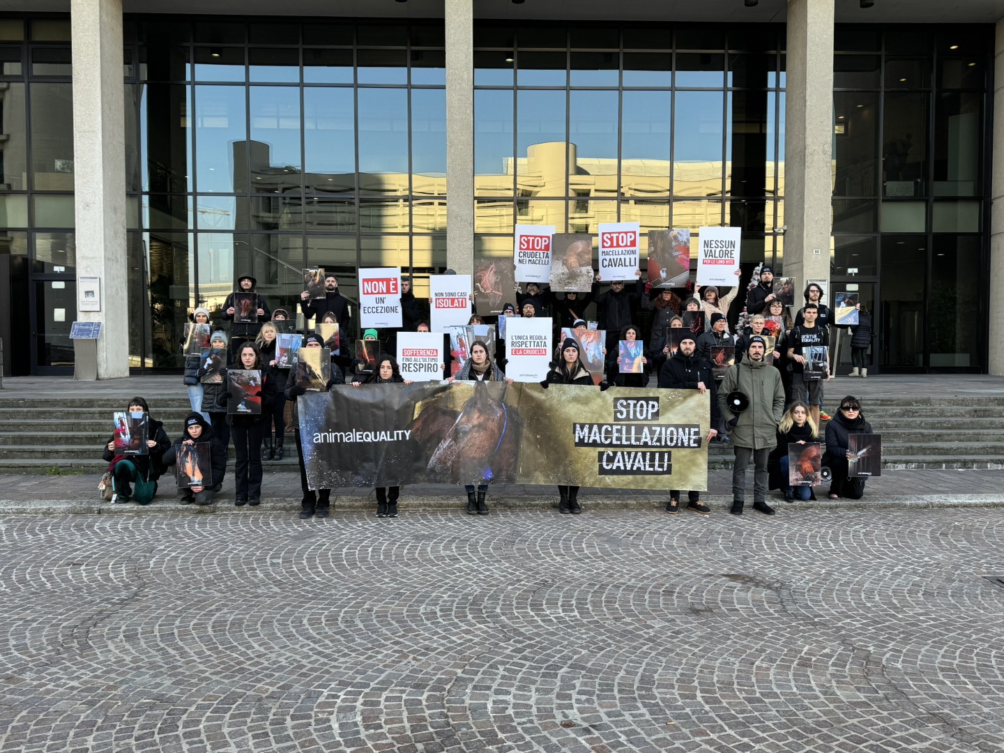 Il presidio di oggi segue una prima manifestazione del 4 dicembre davanti all’Area Territoriale Veterinaria di Correggio, anche questa organizzata per chiedere maggiore trasparenza nei controlli sui macelli. L’inchiesta ha riacceso il dibattito politico nazionale: il 9 dicembre, alla Camera dei Deputati, Animal Equality ha partecipato alla presentazione della proposta di legge a prima firma dell’onorevole Eleonora Evi, che chiede di vietare la macellazione di tutti gli equidi, riconoscendoli come animali d’affezione. Un’iniziativa che si aggiunge alle proposte delle deputate Cherchi e Zanella, orientate nella stessa direzione e ispirate al modello greco, dove dal 2020 la macellazione dei cavalli è vietata per legge.