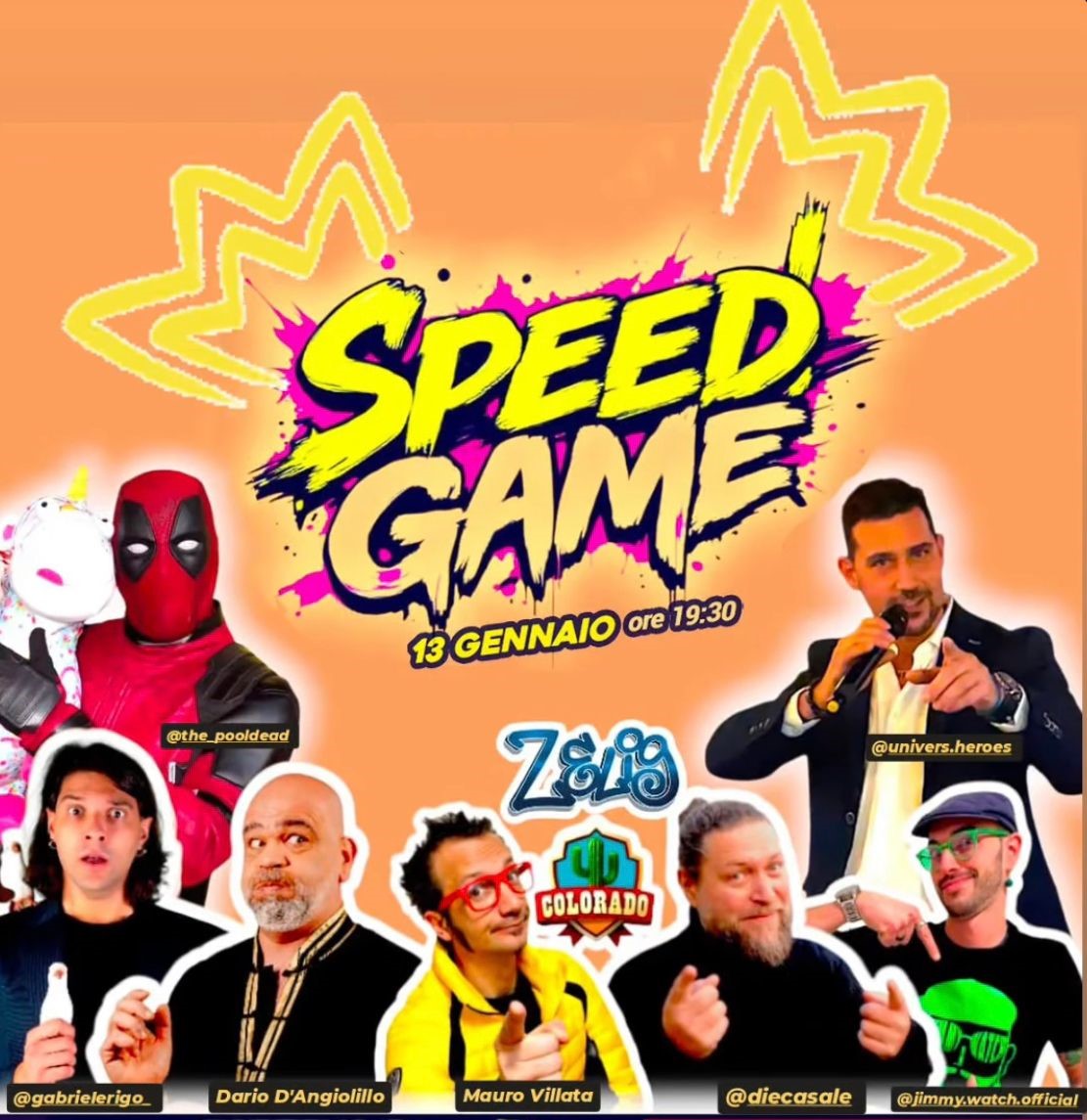 A partire dalle 19:30 entrerà nel vivo lo spettacolo dello Speed Game. Dopo l’accoglienza con drink e buffet, il pubblico sarà accompagnato all’interno della Sala 2 del cinema, dove si alterneranno sul palco artisti di cabaret noti al grande pubblico, direttamente dai programmi Zelig e Colorado.