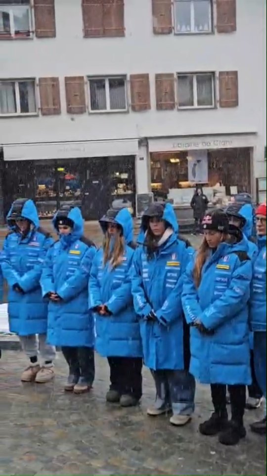 Ma il momento più intenso è arrivato nel pomeriggio. Con Federica Brignone e Sofia Goggia in prima fila, le azzurre e i tecnici Fisi si sono recati davanti al Le Constellation, diventato dopo quella notte un luogo di raccoglimento, colmo di candele e fiori lasciati in memoria delle vittime. Sulla scalinata dell’ingresso è stato deposto un grande mazzo di fiori bianchi e gialli accompagnato dal gagliardetto della Fisi. Poi, ancora una volta, il silenzio. Un minuto vissuto con gli occhi lucidi e il capo chino.