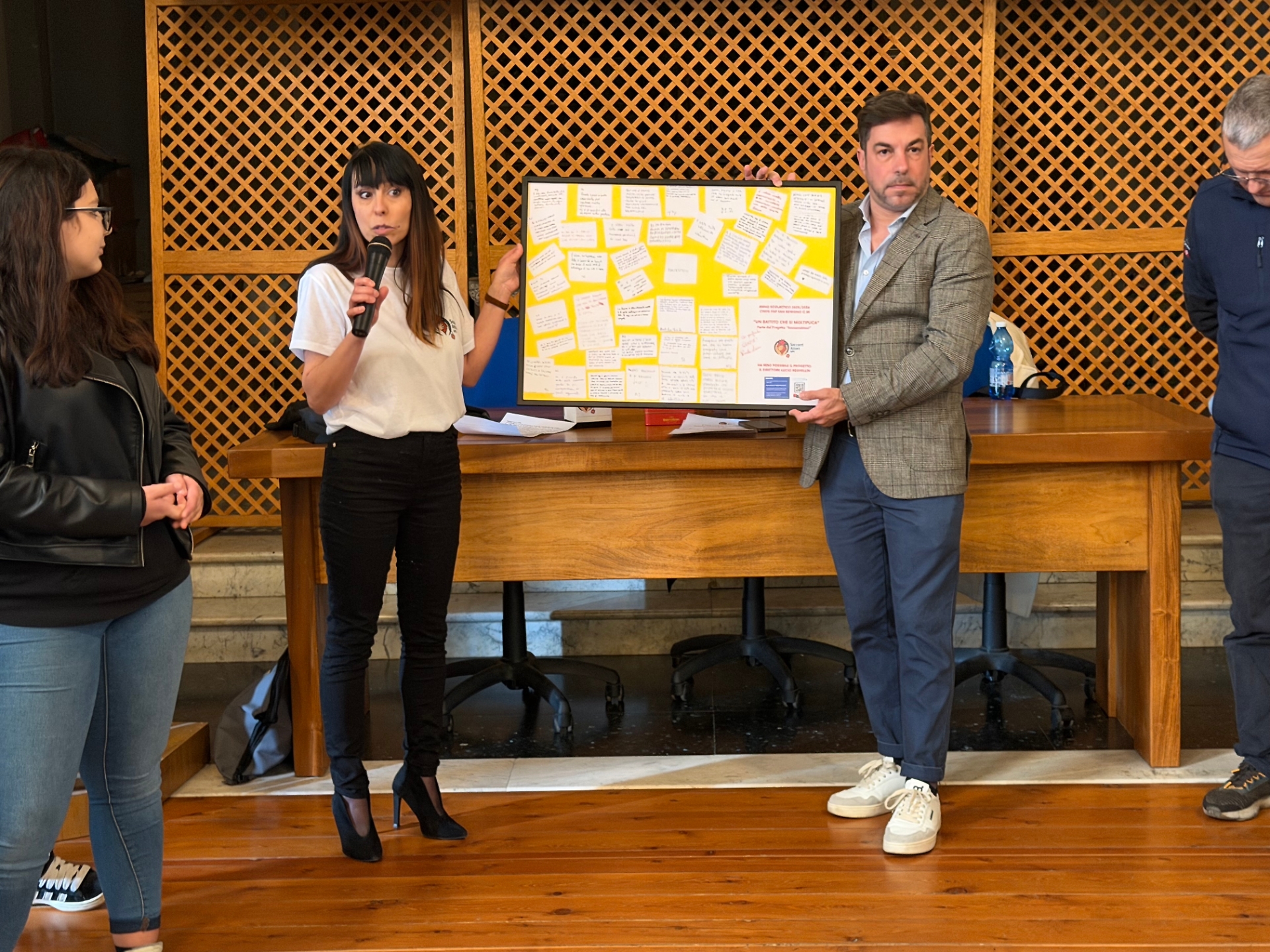 All’incontro hanno partecipato 83 studenti delle classi A2, E2, C2B e C2A. Non erano semplici spettatori: erano già stati formati nelle settimane precedenti attraverso le attività del progetto e durante la mattinata hanno raccontato e mostrato ciò che avevano imparato. L’evento è stato quindi anche un momento di restituzione pubblica del percorso svolto, con testimonianze, letture e dimostrazioni.