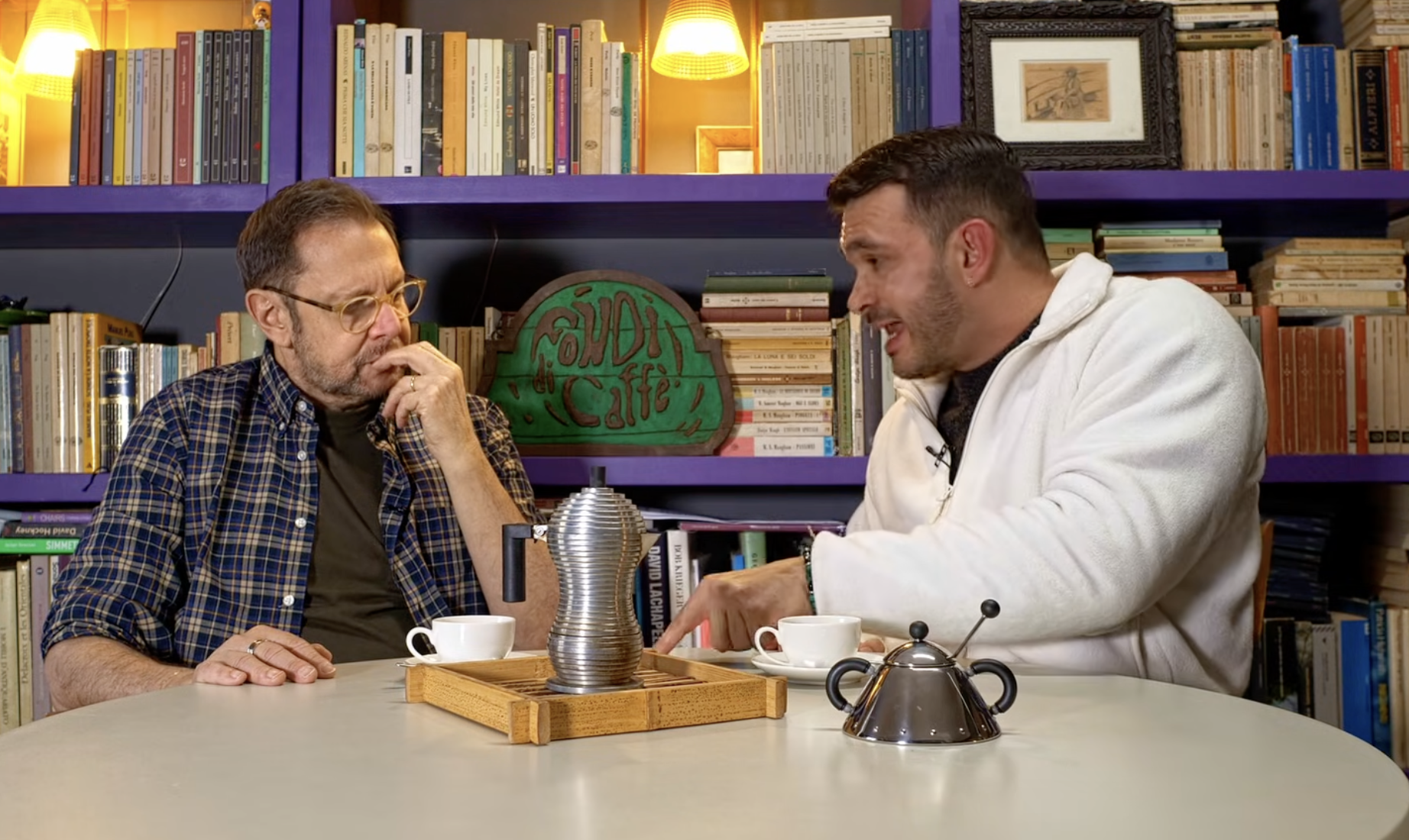 È questo il cortocircuito affascinante che emerge dall’ultima puntata di “Fondi di Caffè”, il format che Bertazzi porta avanti su YouTube: un luogo apparentemente semplice, quasi domestico, dove però si affrontano temi complessi con una leggerezza solo apparente.