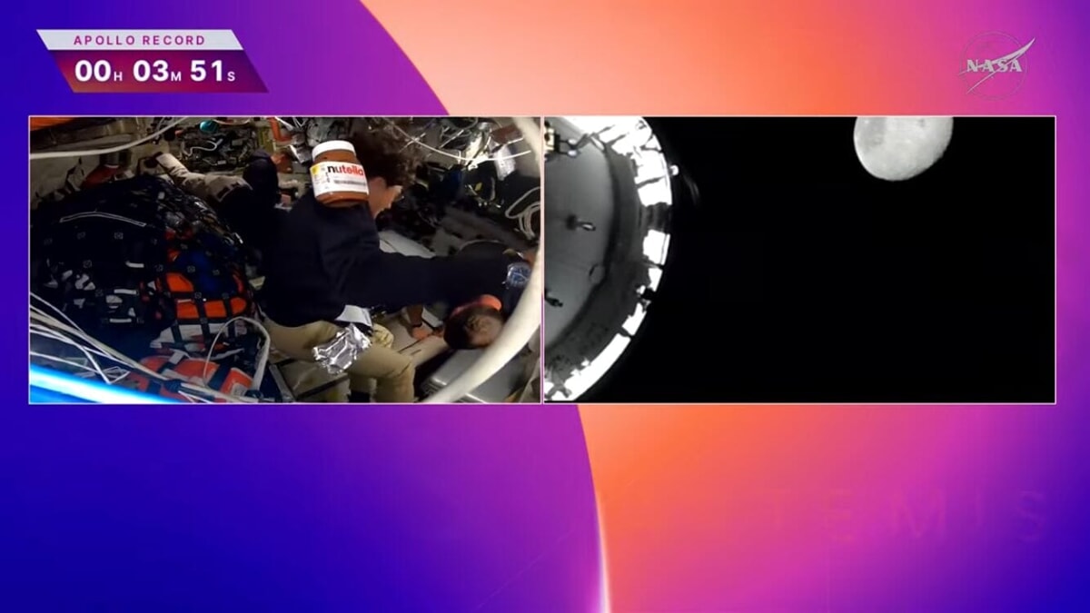Le immagini arrivano direttamente dalla diretta ufficiale della missione, seguita da milioni di spettatori. All’interno della capsula Orion, mentre gli astronauti si preparavano a superare il limite raggiunto da Apollo 13 nel 1970, un oggetto inaspettato ha attraversato l’inquadratura: un barattolo della celebre crema alle nocciole prodotta da Ferrero, che ha iniziato a fluttuare lentamente in assenza di gravità.
