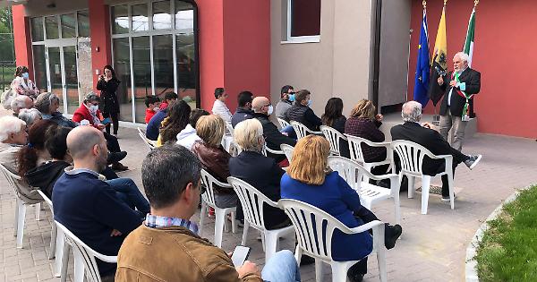 Un momento dell'inaugurazione della scuola media di via Gaiato