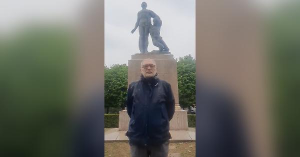 Il consigliere M5S Franco Silvestro davanti al monumento ai caduti di Ciriè