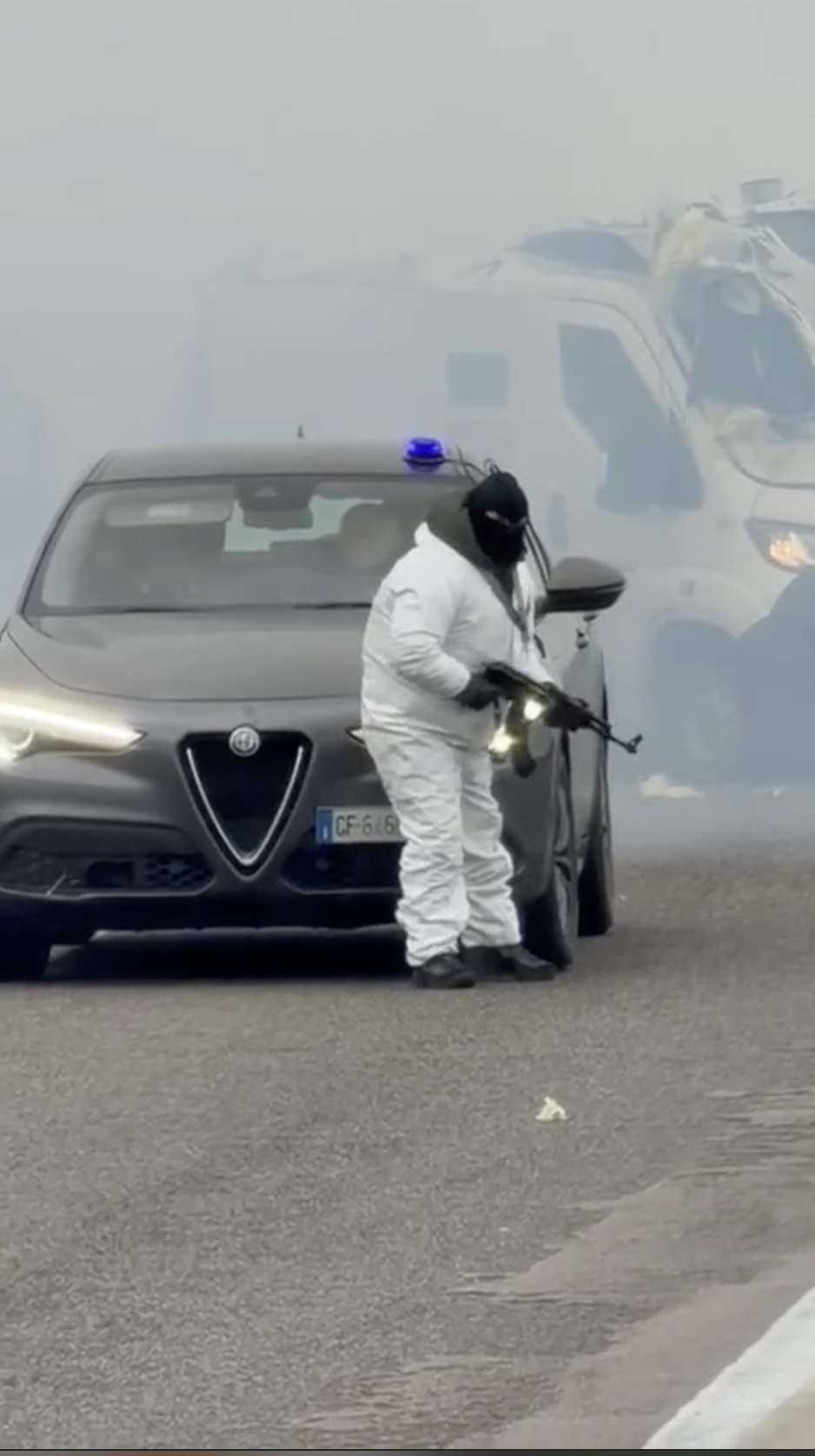 Secondo la ricostruzione, ad agire sarebbero state almeno otto persone, entrate in azione con uno schema collaudato e mezzi impressionanti. La banda avrebbe utilizzato finte auto civetta delle forze dell’ordine, complete di lampeggianti blu, per fermare i due blindati che viaggiavano insieme. Per bloccare ogni possibile intervento delle pattuglie, i rapinatori hanno messo di traverso e incendiato un furgone e un camion, paralizzando completamente la circolazione.
