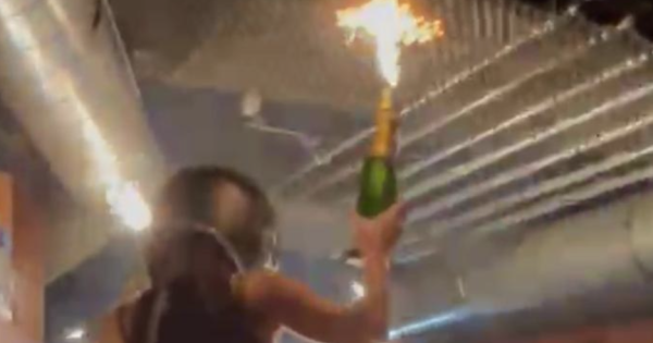 Nel filmato si vede Cyanne Panine, cameriera con il casco protettivo, sulle spalle di un collega mentre porta due bottiglie di Champagne ai tavoli. Su ciascuna bottiglia è accesa una candela pirotecnica. In un gesto che oggi appare innocuo, la giovane alza il braccio destro: le scintille sfiorano i pannelli fonoassorbenti del soffitto, materiali estremamente infiammabili. Bastano pochissimi secondi, non più di due, e il primo pannello prende fuoco.