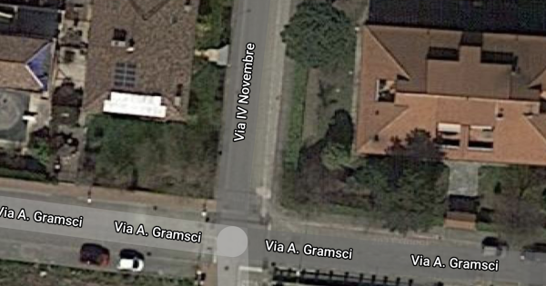 Fotografia aerea dell'incrocio birichino fra via Gramsci e via IV novembre a Torrazza