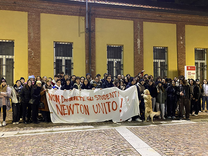 "Non dividerete gli studenti! Newton Unito!". Esponendo questo striscione nella serata di giovedì un centinaio di ragazzi e ragazze del liceo Isaac Newton di Chivasso hanno portato la loro protesta in piazza Generale Carlo Alberto Dalla Chiesa, di fronte al Municipio.