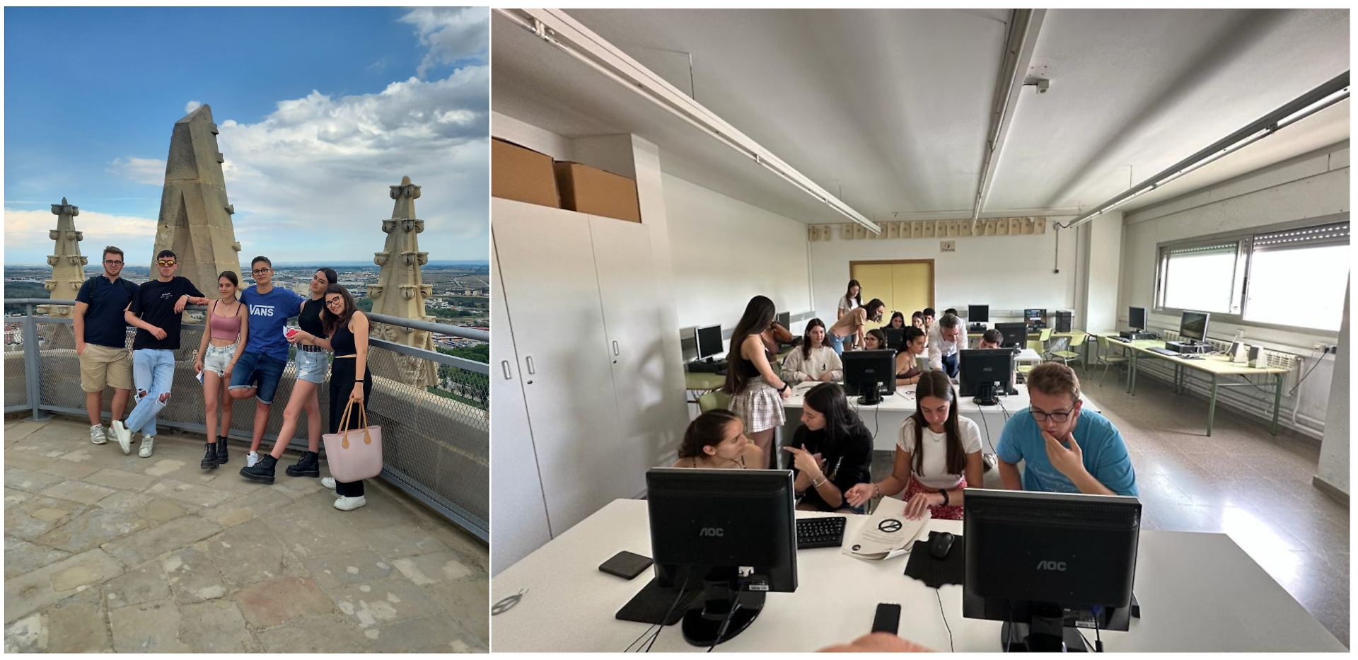 I due Alessandro, Daniele, Elena, Giulia e Nicole sono appena rientrati da Lleida (Spagna) dove hanno diffuso il gioco didattico TheGame partecipando a lezioni in inglese su argomenti diversi all'interno di classi dell'Istituto Maria Rubies