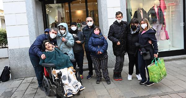 In foto, i ragazzi della cooperativa il Margine con Francesco Cena in via Italia (foto e video di Tancredi Pistamiglio)
