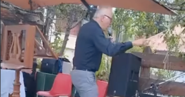 A 62 anni, il vescovo Derio Olivero si mette a cantare ad una festa a Pattemouche, frazione di Pragelato (TO).