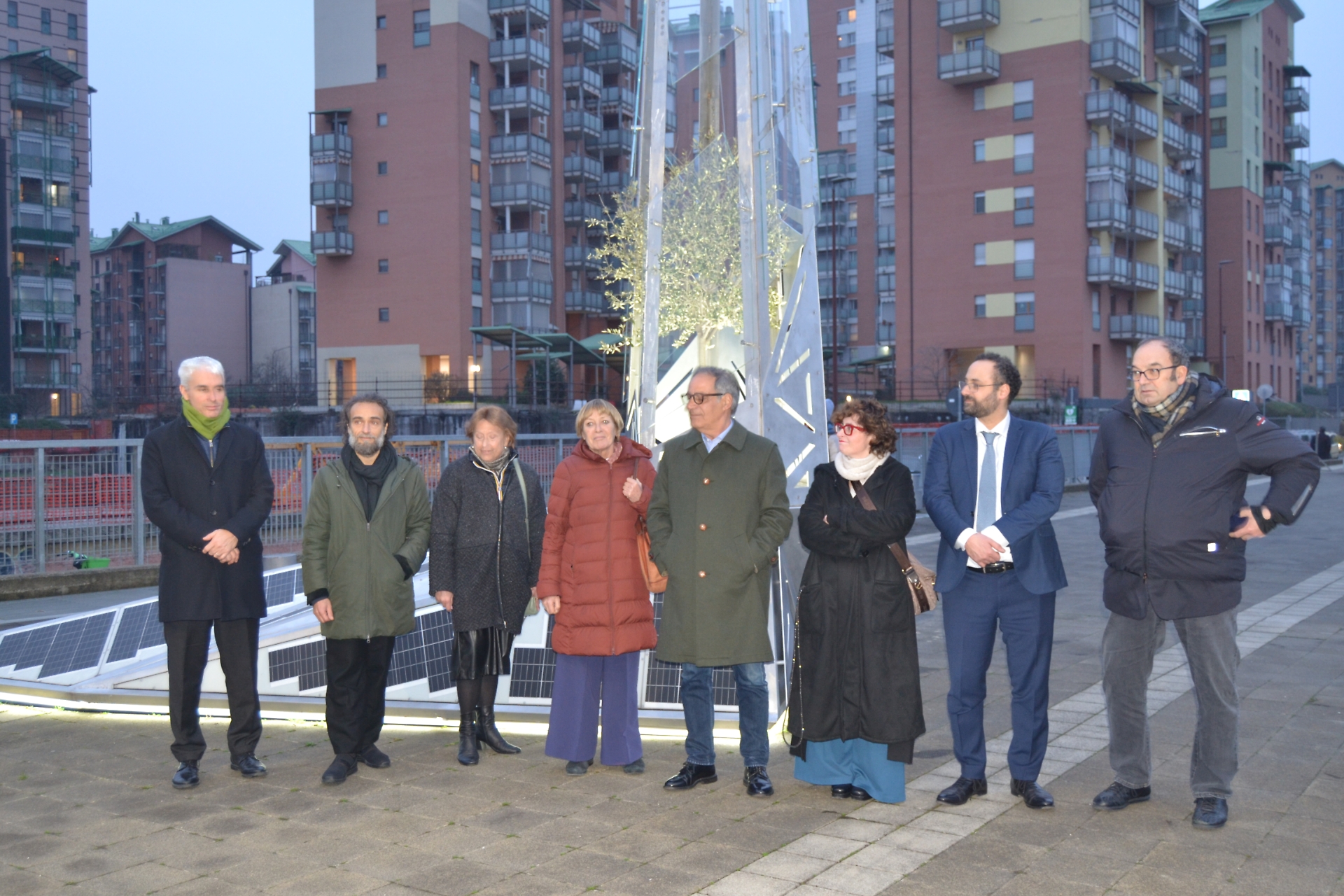 Il Cristallo di Luce, realizzato in vetro, acciaio e alluminio, richiama le imponenti forme del paesaggio alpino che caratterizza il panorama torinese. Al suo interno, una pianta di ulivo, simbolo di resilienza e adattamento, invita a riflettere sul rapporto tra uomo e natura. Dotata di tecnologia fotovoltaica, l’opera è in grado di autoalimentarsi, generando circa 900 kWh all’anno, energia sufficiente per ricaricare in una giornata 4 e-bike, 45 laptop e 200 smartphone.