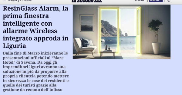 “ResinGlass Alarm, la prima finestra intelligente con allarme wireless integrato approda in Liguria”.