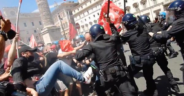 Scontri tra lavoratori Cobas forze e dell'ordine davanti a Palazzo Chigi