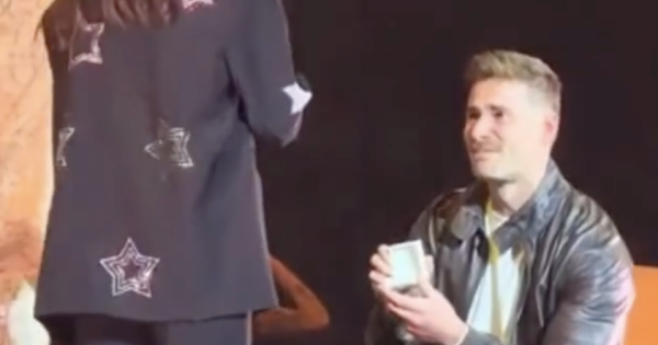 Poi, l’attimo che ha fatto esplodere la platea: il ragazzo si è inginocchiato e ha pronunciato la fatidica domanda. In sala un boato, mani al cielo, telefoni ovunque per immortalare un gesto che ha trasformato il concerto in una serata indimenticabile.