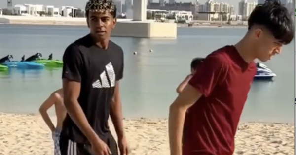 Senza annunci né telecamere ufficiali, Yamal è sceso in spiaggia come un ragazzo qualunque e si è unito a una partitella improvvisata con alcuni bambini che stavano giocando sulla sabbia, a pochi metri dal mare. All’inizio quasi nessuno sembra riconoscerlo, poi bastano pochi tocchi per cambiare il ritmo della partita e attirare l’attenzione di tutti.